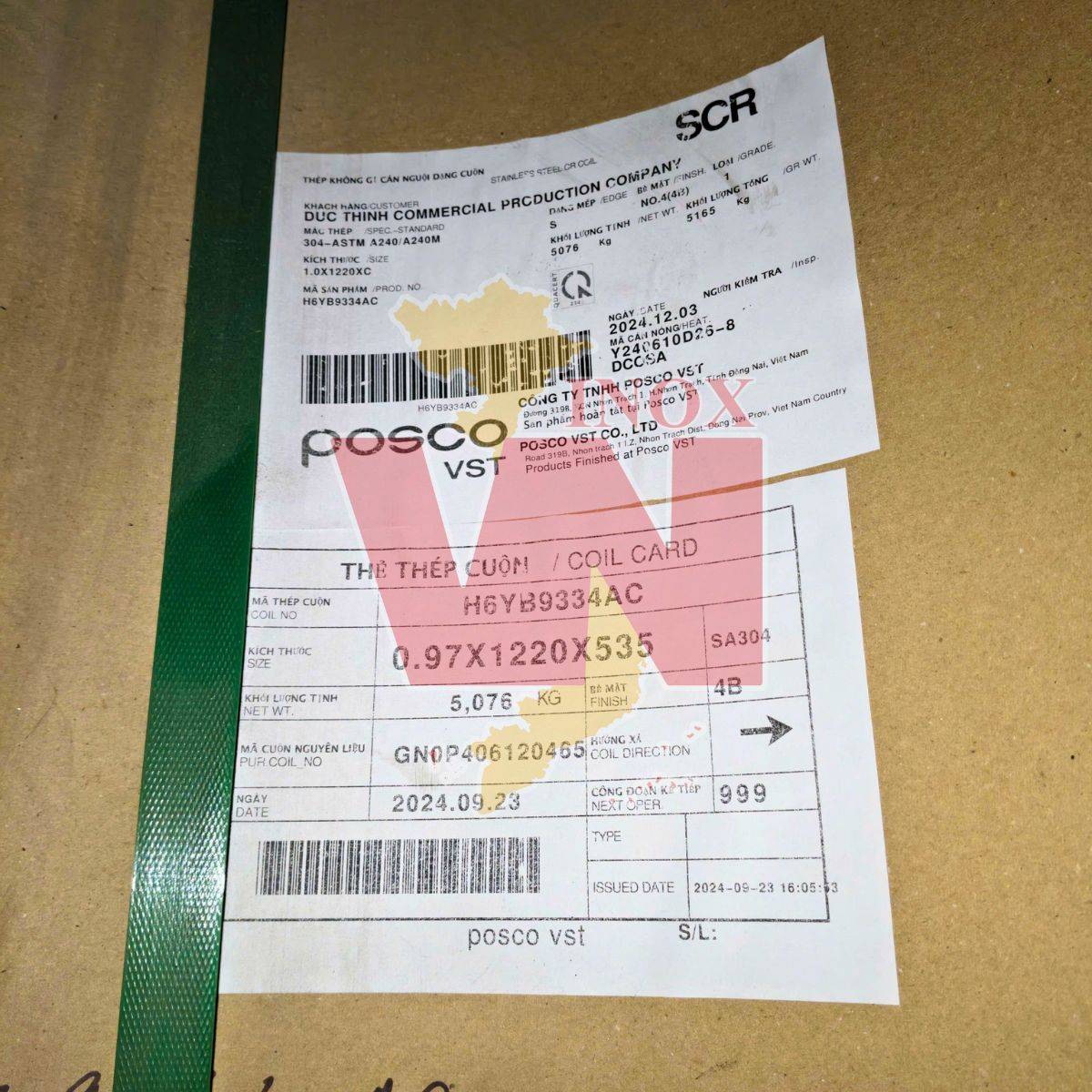 Lưu ý: sản phẩm được đánh xước một mặt tại Thái Lan, về Posco VST – Việt Nam nắn phẳng, mặt xước phủ PVC có in logo Thainox.